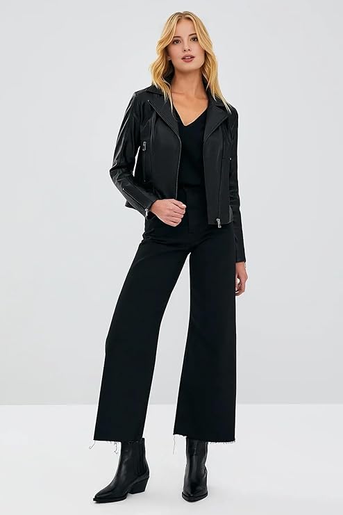 - Notched Lapel Collar Design – Womens leather jacket adds classic biker styling and pairs effortlessly with casual or edgy outfits.